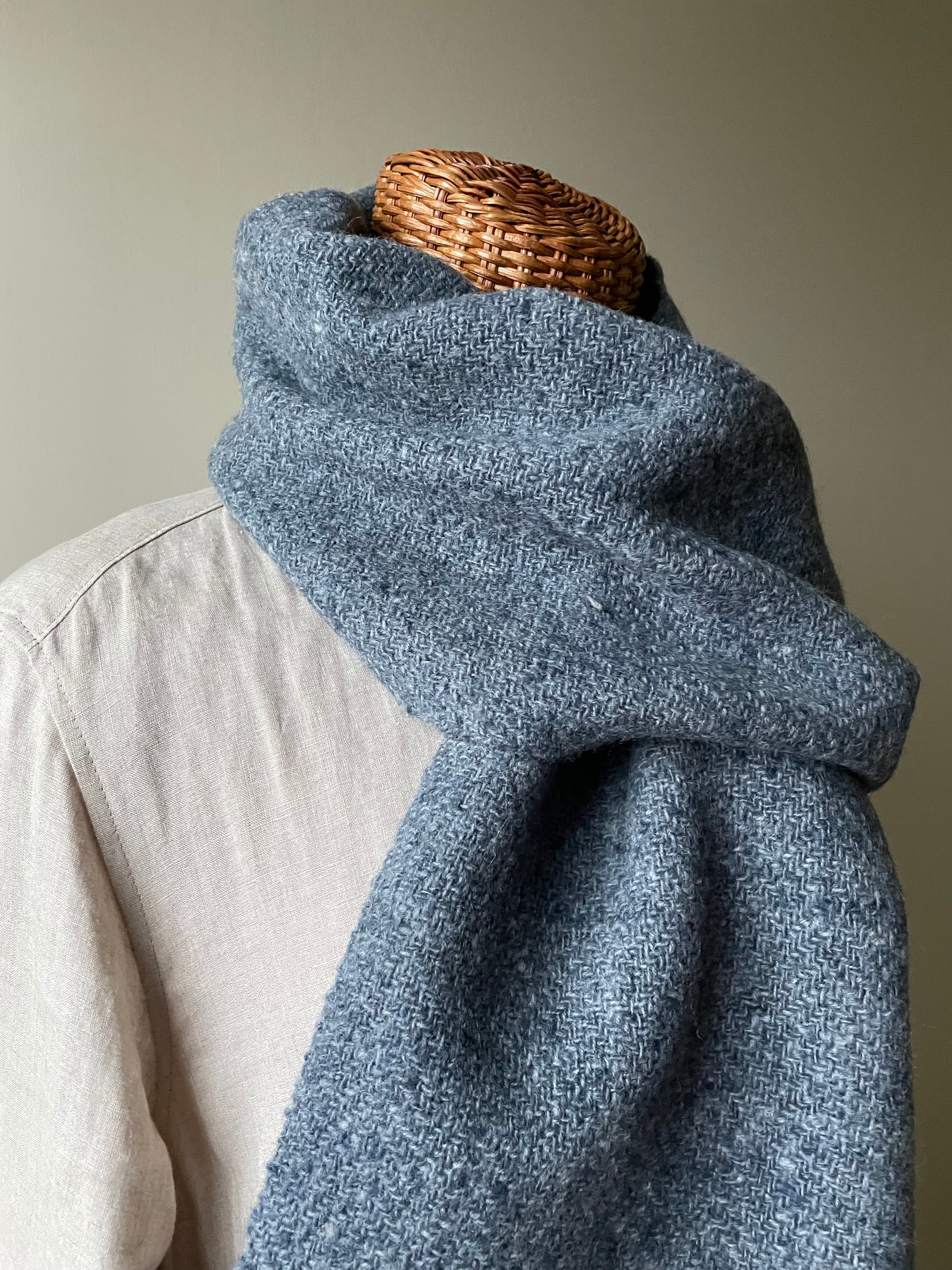 ホームスパンマフラー 杉綾 ブルーグレー