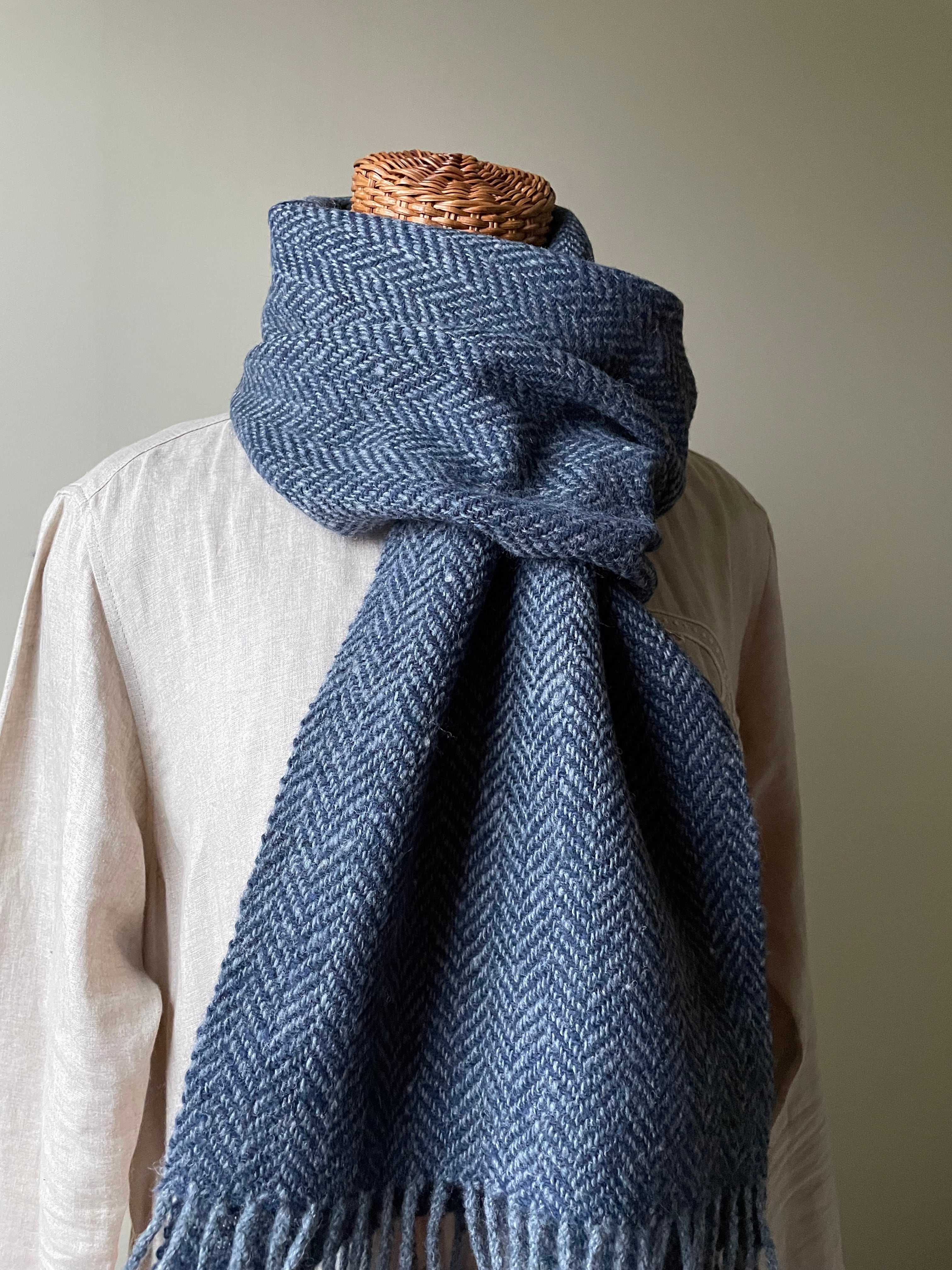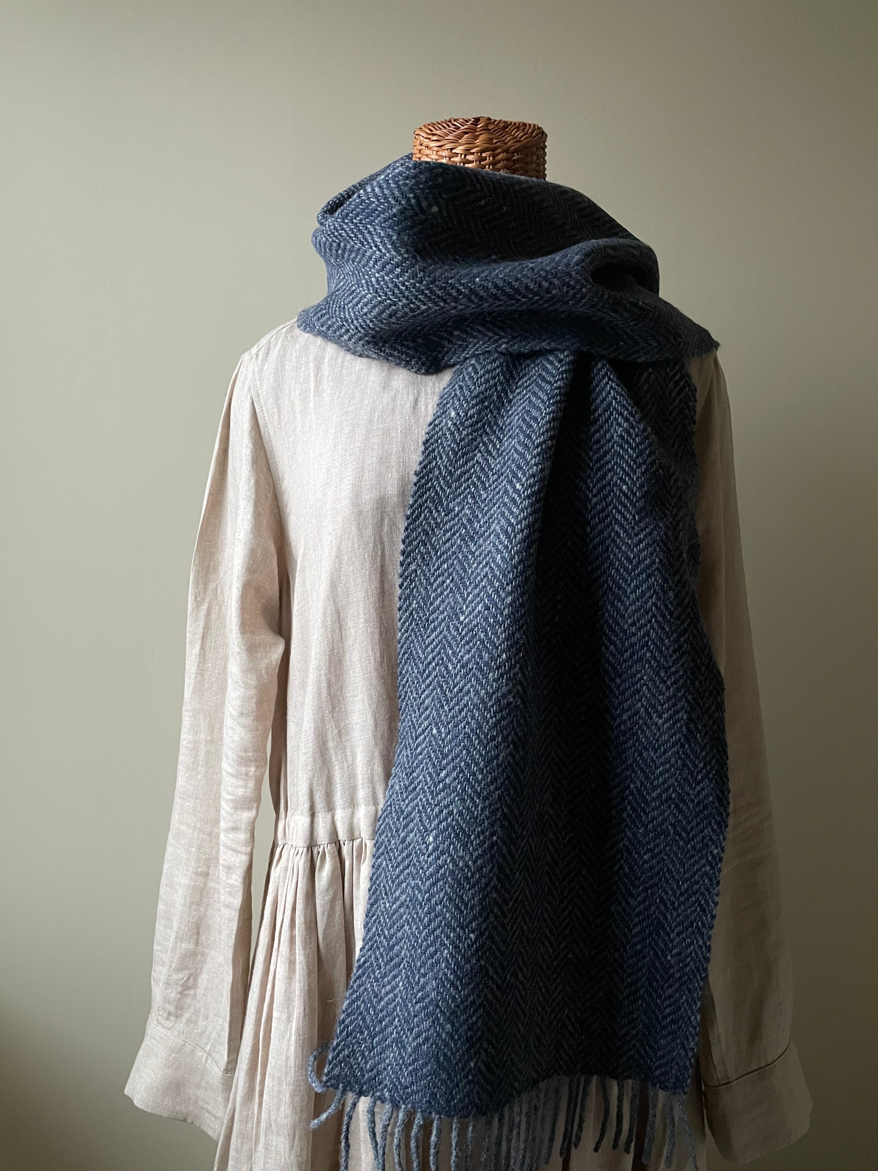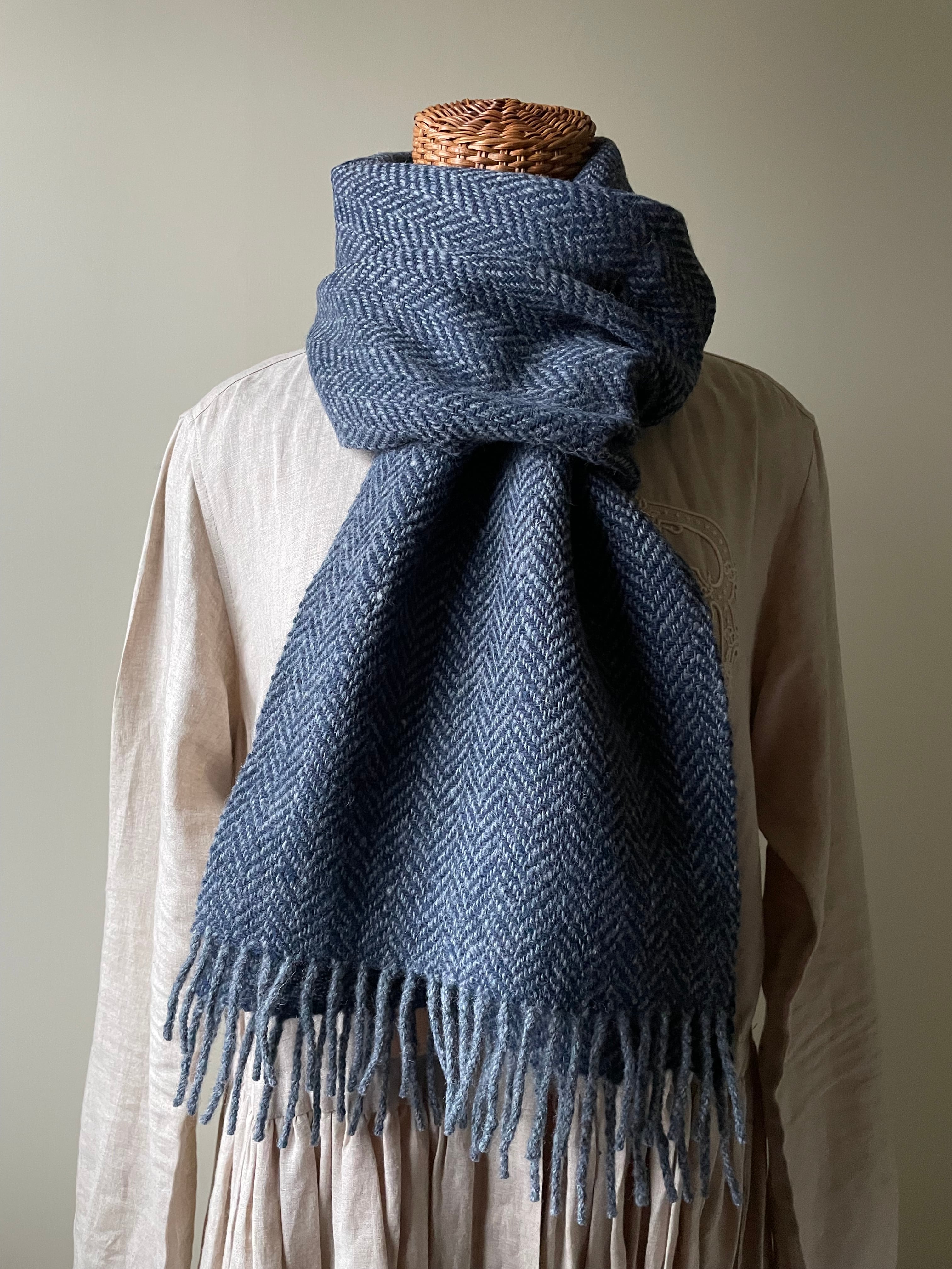 ホームスパンマフラー 杉綾 紺
